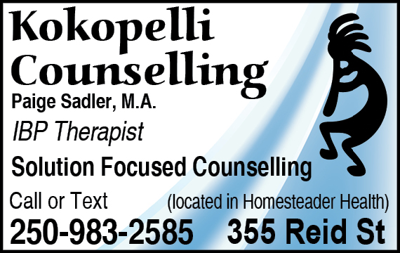 Are you feeling blue? Suffering from anxiety? In the depths of depression? Marriage or relationship strained? Quesnel's Kokopelli Counselling can help. Therapist Paige Sadler looks for solutions - solutions that work. That is what Kokopelli Counselling is all about - solution-focused therapy. This is a process that is goal-oriented rather than problem-focused.